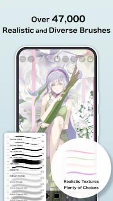 - Over 47000 kinds of brushes including dip pens, felt tip pens, digital pens, air brushes, fan brushes, flat brushes, pencils, oil brushes, charcoal brushes, crayons and stamps.