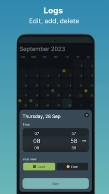 Calendar and History: Logs are available in the calendar. Add, edit, or delete any log