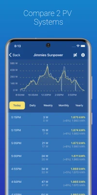 * Add multiple PV Systems * Combine the data of 2 PV Systems * Compare your output with the output of any other Solar system on PVOutput.org * View daily, weekly, monthly and yearly data.